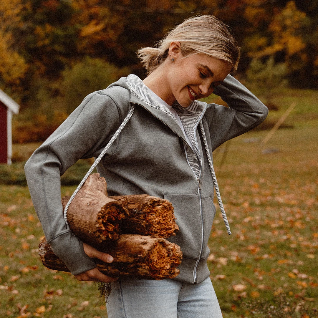 or yes, even your denim. Fully lined with our honeycomb fabric to add a pop of something fun, it even features thumbholes at the sleeves for an added bonus.