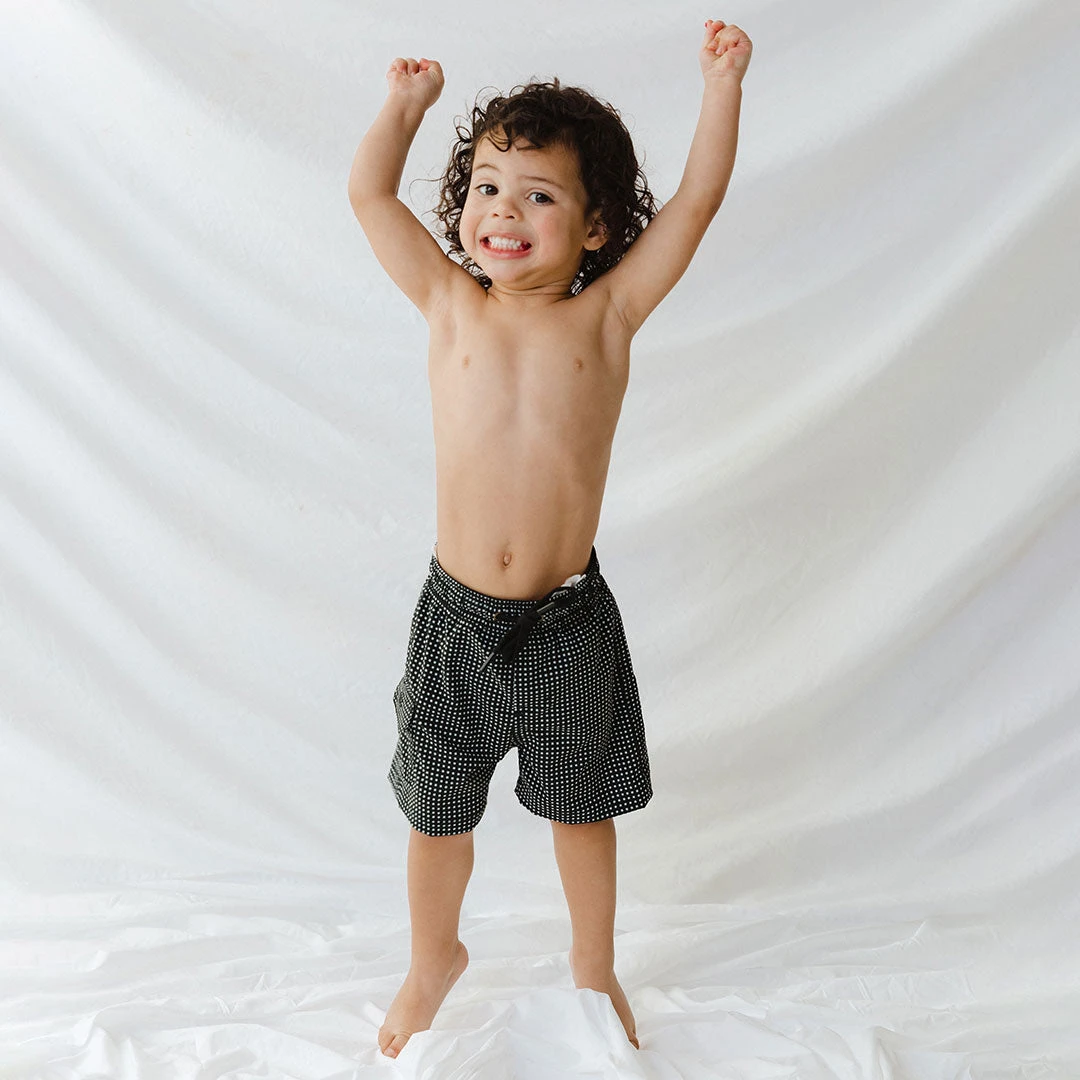 Because coordinating with your little man is just too good to pass up on! They’re stretchy and comfy and your little one will love the pockets and how quickly they dry after a hard day at the pool or beach.