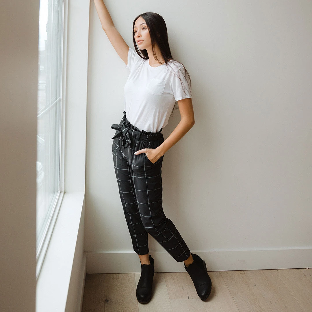Go anywhere in comfort and style in the Bow Belt Capri! Made in our best-selling Jetsetter fabric, these capris are high-waisted and feature a ruffle top and a belt that ties in front for a fun and feminine look. A straight, tailored leg and pockets to finish it off!Â