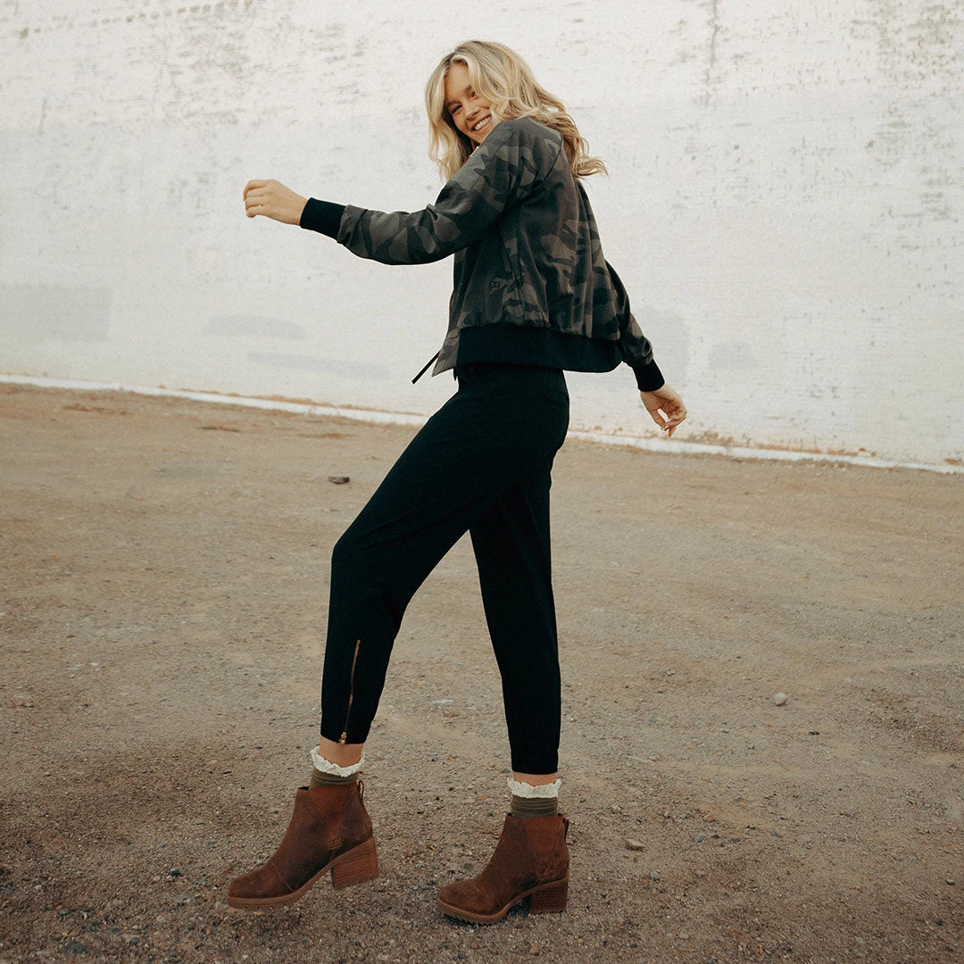 Our Bomber Jacket is now in a camo print! It’s that transitional piece that can take any outfit from classy to sassy. Plus, the gold zippers give this versatile jacket a feminine edge.