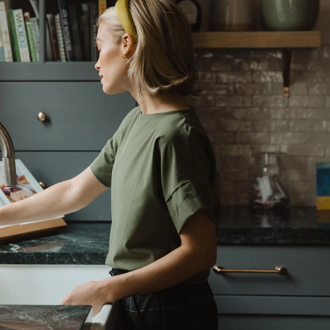 Sage is one of our very favorites, for good reason! It’s gorgeous on the Boss Crop Tee, the perfect length to go with leggings, high-waisted denim, and anything with an adorable waistband (hint: