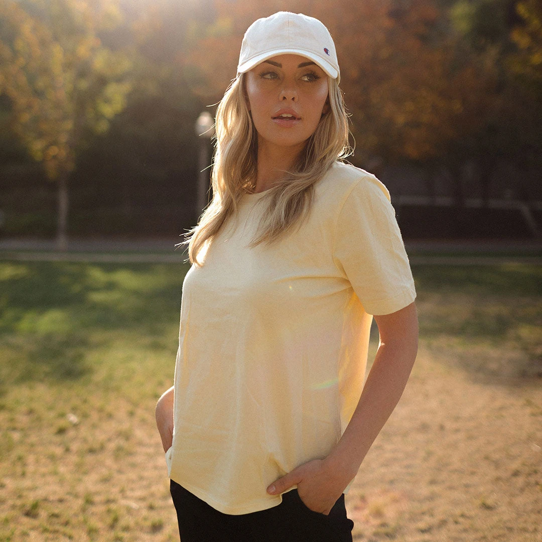 Our most classic tee, now in a light yellow! The Boyfriend Tee has a relaxed fit, with a slightly longer sleeve than our original Basic Tee. Casual, comfortable, and easy to accessorize, this yellow tee is a sunny favorite!