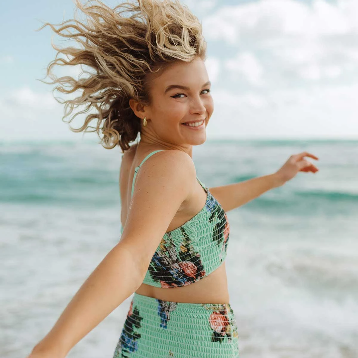 All we need: The sun and this smocked suit! Featuring the comfiest, stretchiest smocked fabric, our Charlotte Smocked Crop is our definition of the perfect summer suit.Â