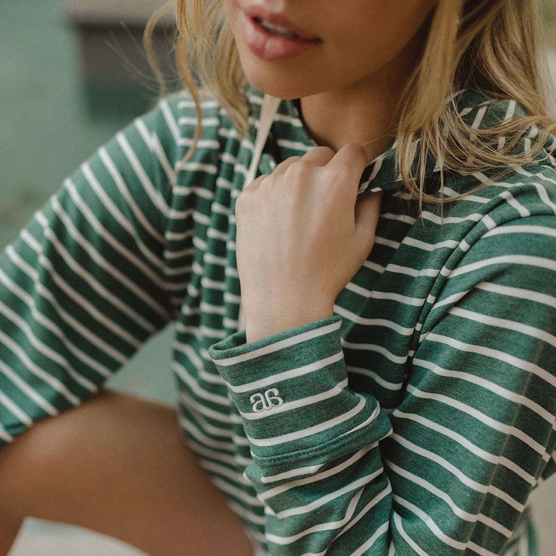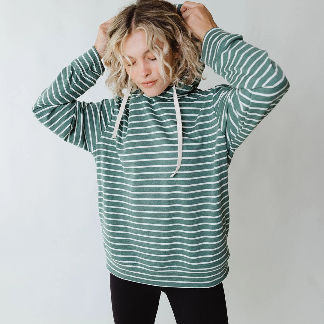 This green stripe hoodie is soft, cozy, and ready for a gorgeous fall hike! Changing colors are no match for this evergreen pullover. It’s the perfect oversized layer for cooler days!