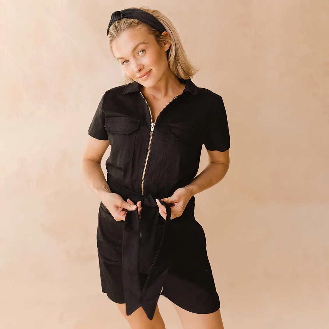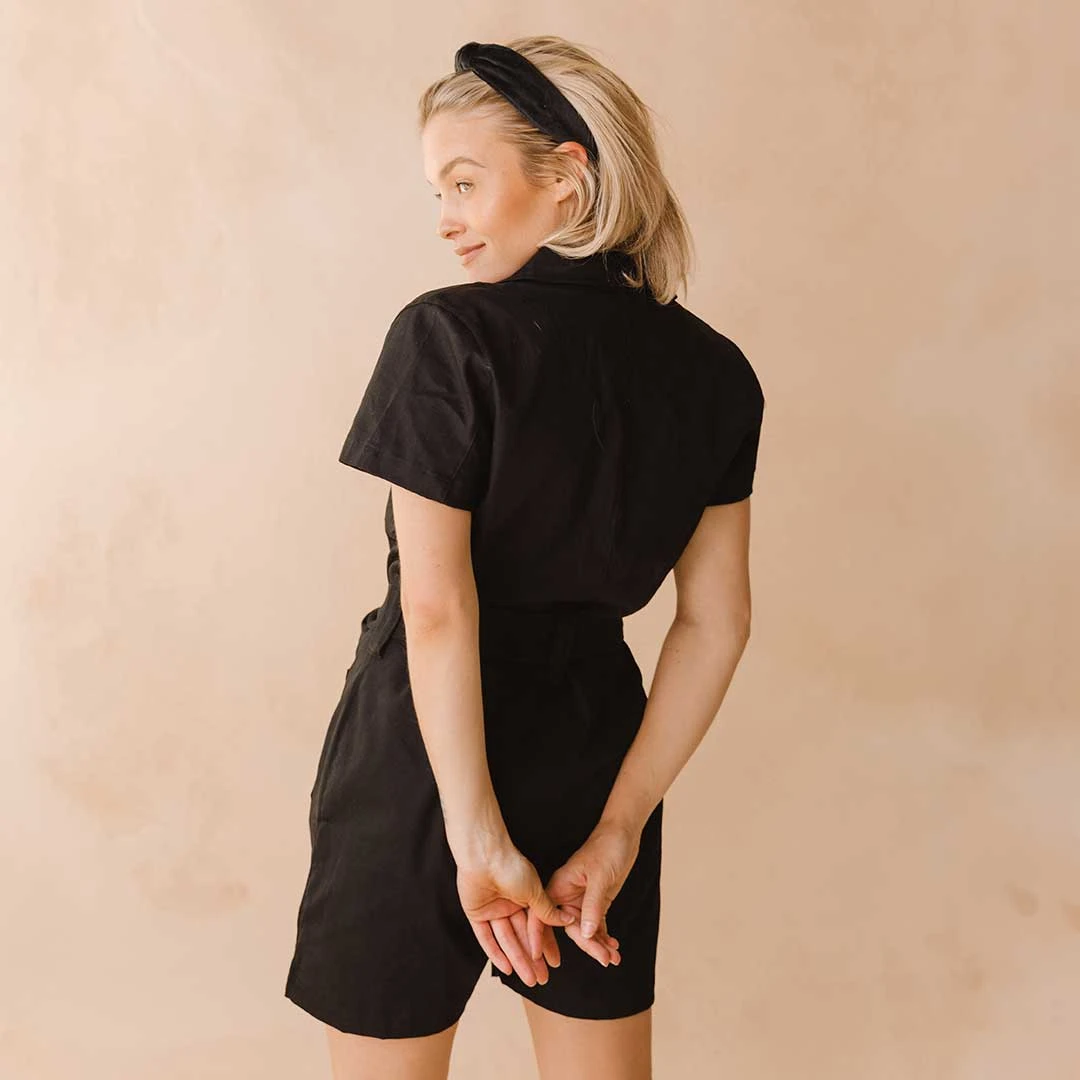 Level up your city style with our Black Canvas City Romper! Sporting a black canvas material and structured yet flattering fit, you’ll reach for this again and again – no matter where you go.Â