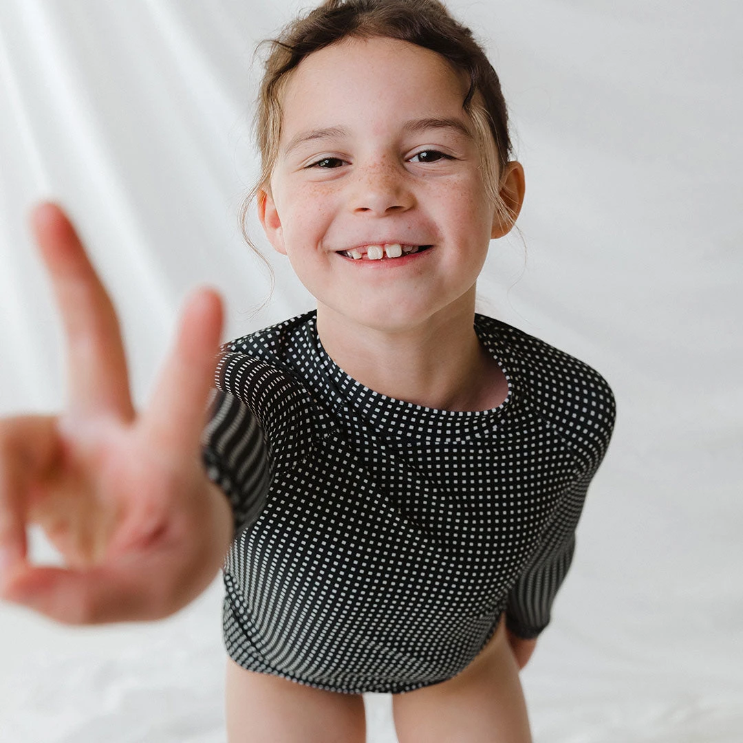 It’s a win win! Add a little extra coverage to those little arms and make it stylish! Experience the joy of matching with your little one when you pair this with your big kid version. Top and bottom included.