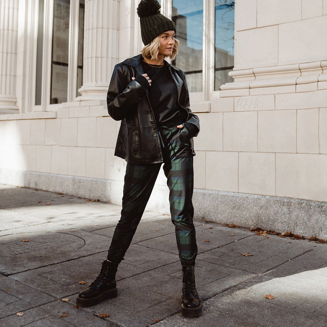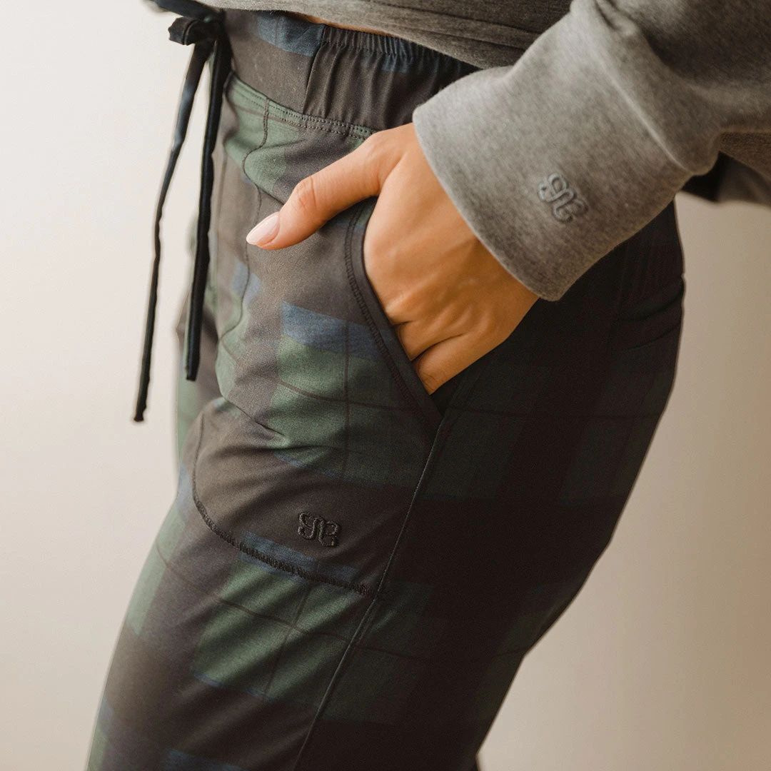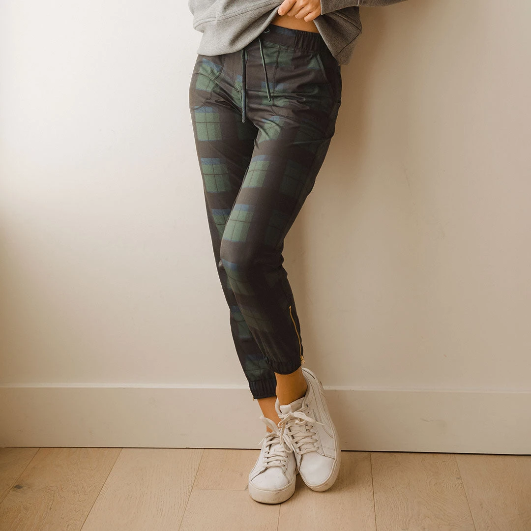 Welcome the holiday season in true Albion style! Our best-selling pants now come in this festive plaid, making them the perfect holiday pants for women. The gold zipper elevates the look while the mid rise, stretchy fabric, elastic and drawstring waistband, and pockets make them the comfiest pants you’ll never want to take off! These holiday plaid joggers are sure to be your go-to this season!