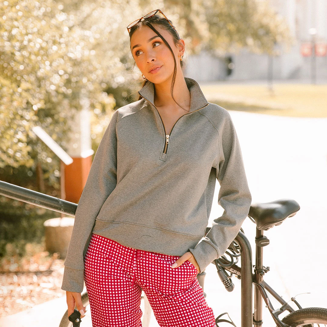 . The signature gold zipper, pockets, and half-zip neckline make it one of our comfiest tops, yet!