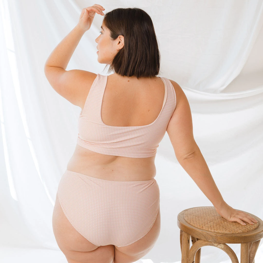 The swim top of your dreams! This square neck bikini top features thick straps for support and a pink check print that is feminine and flirty. Pair it with our matching