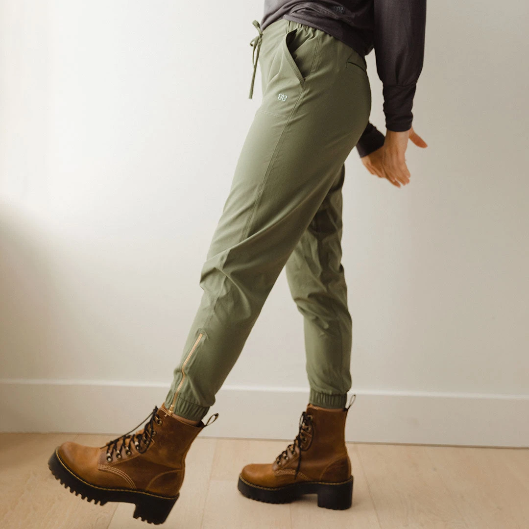 Our best selling joggers, beloved by petites, talls and everyone in between. Light weight, wrinkle-free, quick drying, and stretchy, these pants are perfect for travel, work, or home. Especially in this neutral Sage shade!