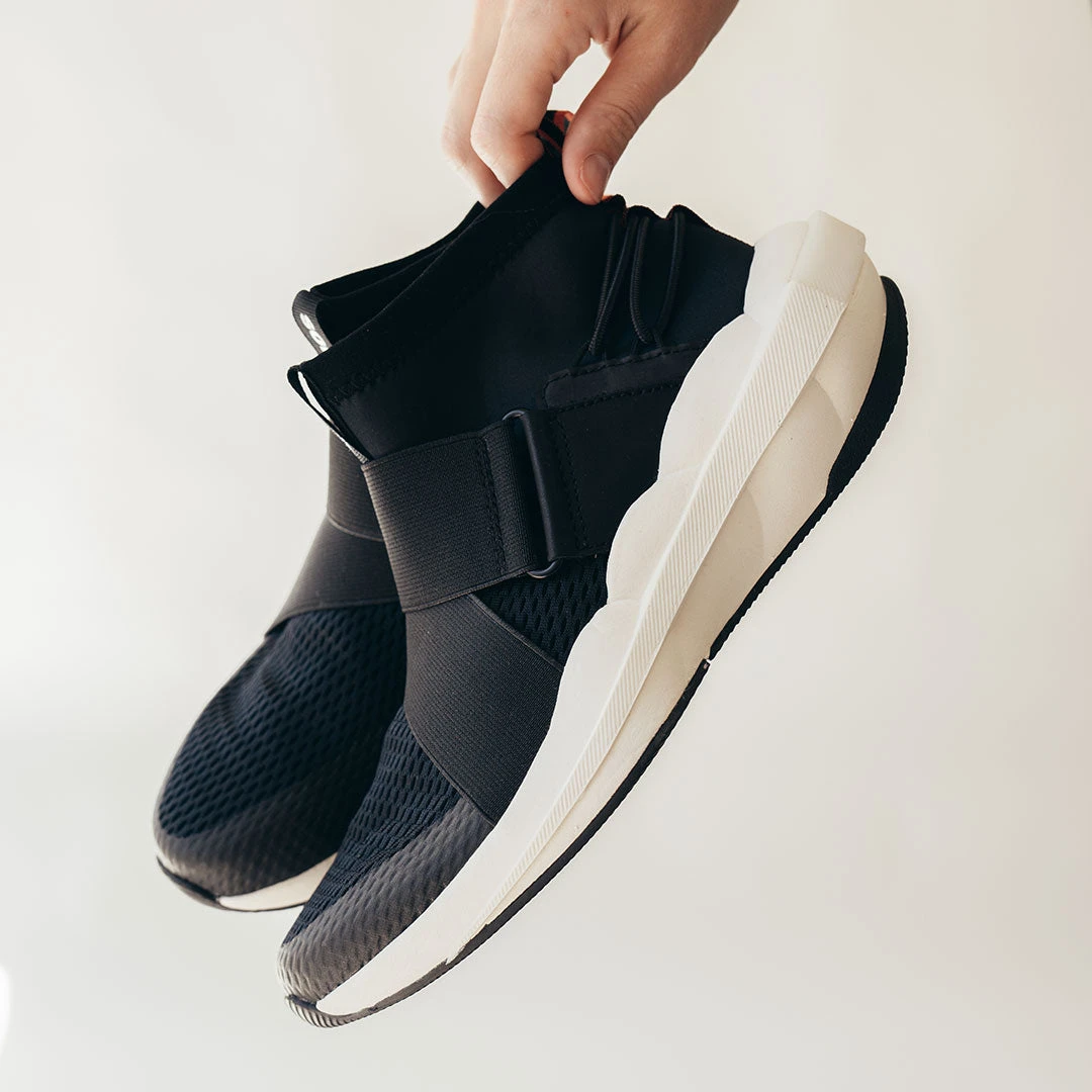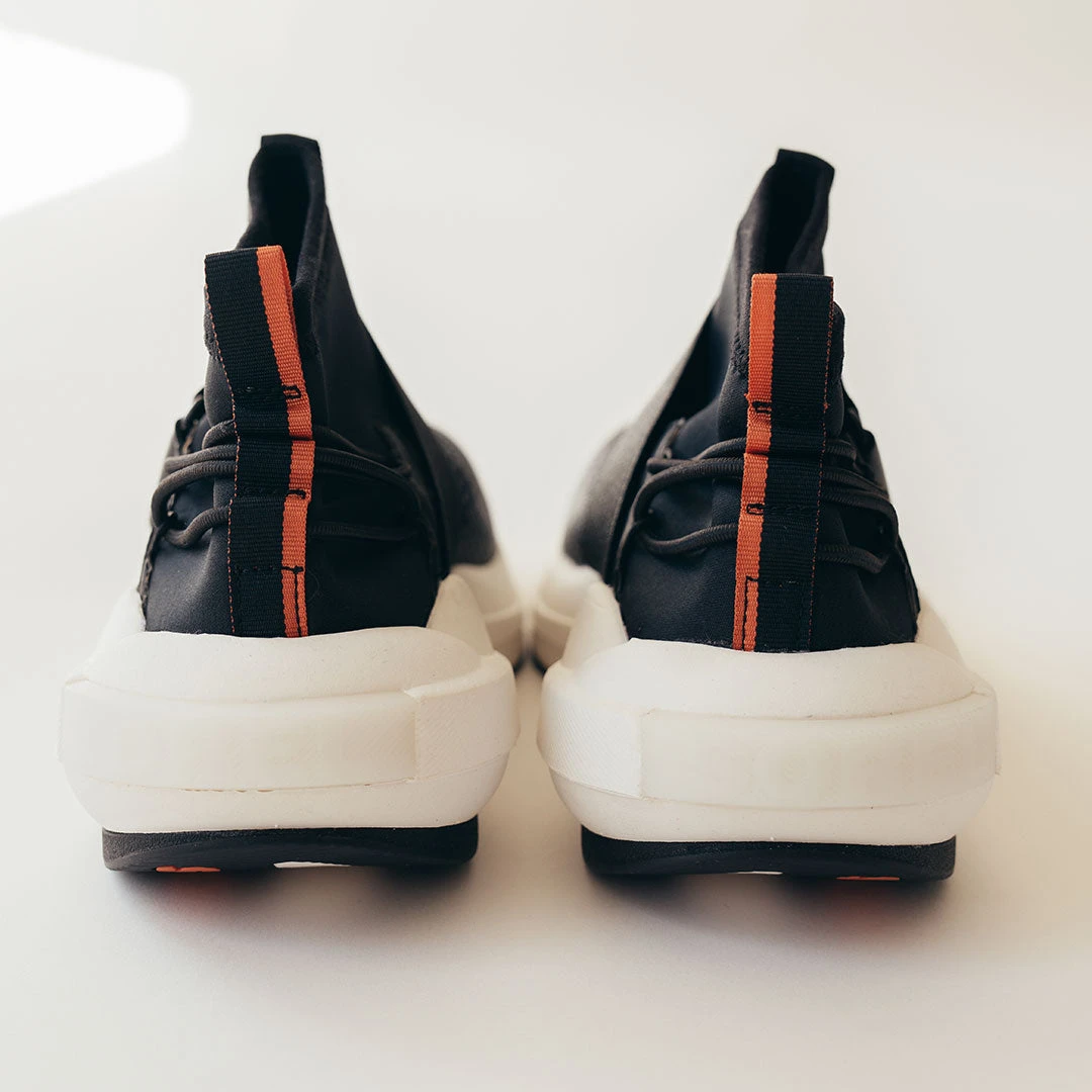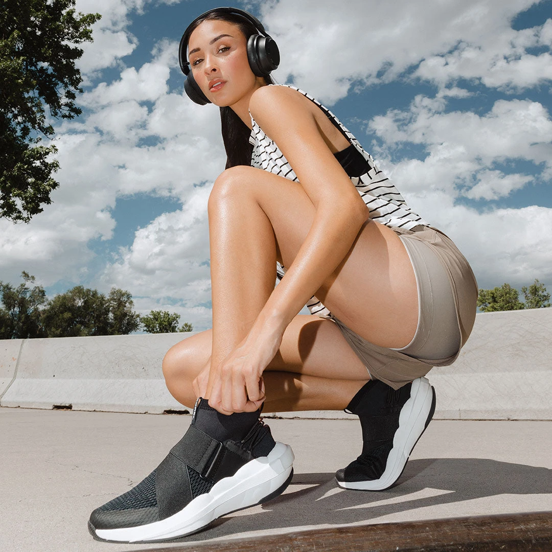 Futuristic and sporty, this soft pull-on bootie is an easy way to dress up your casual look. With a bungee at the back to give you a “just right” fit, this amazingly comfortable shoe is perfect for long travel days and running around town.