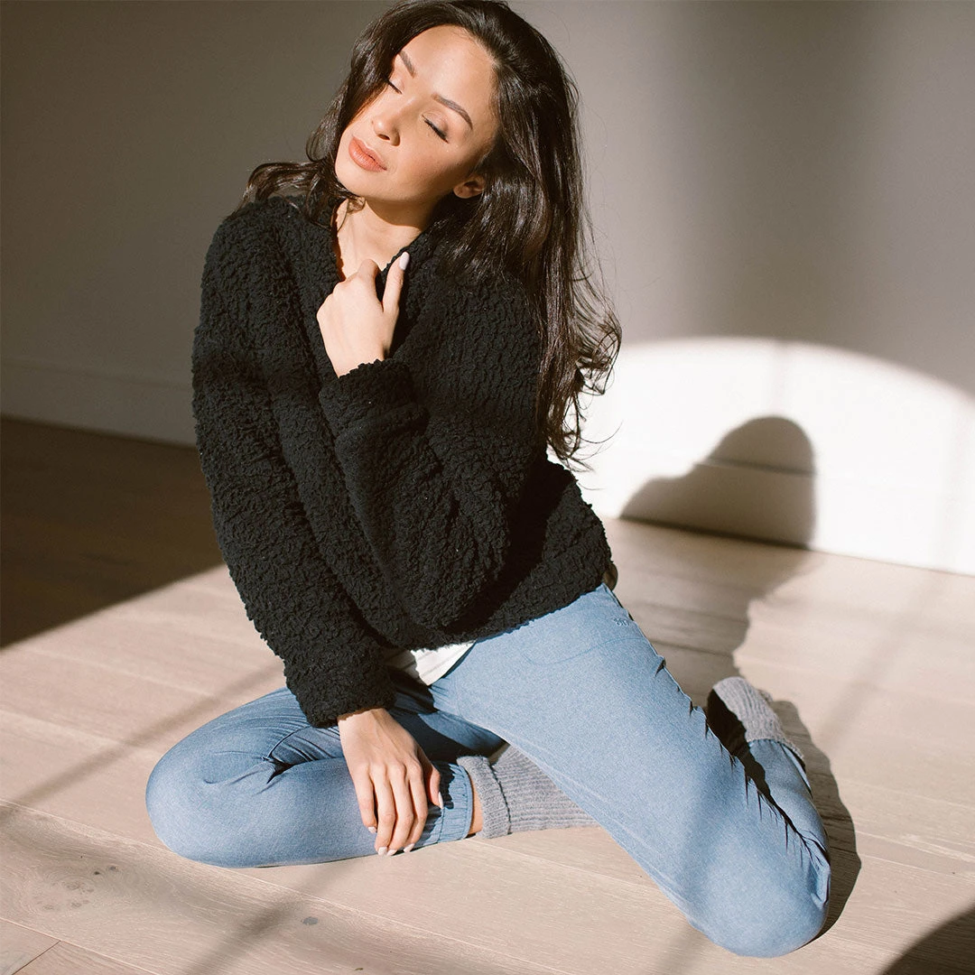 It doesn’t get cozier than this! Our Teddy Pullover is our favorite for lounging, cuddling, running errands, going out… Basically we’re wearing this top 24/7. The Teddy Pullover is made to throw on over your work out outfit or dress up withÂ