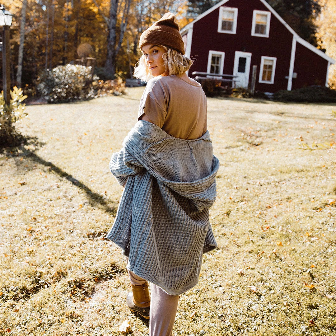 Meet the most snuggle-worthy long cardigan ever! This soft blue knit cardigan has a chunky rib knit that is both gorgeous and insanely cozy. Extra long sleeves and a hood will keep you toasty warm, whether you’re sipping hot chocolate at home or out for an adventure. Don’t forget the pockets! Let’s layer up!